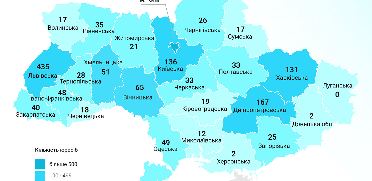 Географічно лідирує Київ: у столиці зареєстровано понад половину резидентів — 1704 компанії. Далі йдуть Львівська (435), Дніпропетровська (167), Київська (136) і Харківська (131) області. За основним видом діяльності переважають ІТ-сфери: 2639 юросіб віднесені до «Інформації та телекомунікацій», ще 132 компанії — до професійної, наукової та технічної діяльності; близько 6% займаються виробництвом інших транспортних засобів.