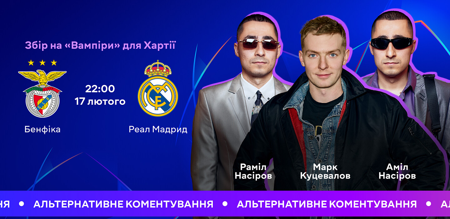 У середу, 17 лютого, на фанатів футболу чекає особливий вечір: у плей-оф Ліги чемпіонів зустрінуться лісабонська «Бенфіка» та мадридський «Реал». Український мовник турніру MEGOGO підготував для цього матчу нестандартну трансляцію, яка поєднуватиме спорт, гумор та благодійність.