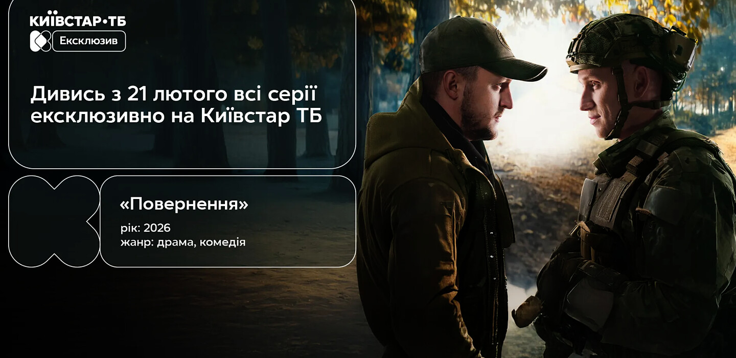 Платформа кіно та телебачення «Київстар ТБ» анонсувала онлайн-прем’єру нової української драмеді «Повернення». Серіал, що піднімає гострі питання реабілітації захисників та їхньої взаємодії з цивільним світом, з’явиться у доступі 21 лютого — на день раніше за телевізійний ефір.